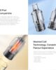 Το TG Pod διαθέτει ένα φιλικό προς το χρήστη σύστημα πλευρικής αναπλήρωσης, σχολαστικά σχεδιασμένο για αβίαστη λειτουργία με κύρια εστίαση στην ευκολία του χρήστη. Αυτό το καινοτόμο σύστημα όχι μόνο απλοποιεί τη διαδικασία επαναπλήρωσης, αλλά εξασφαλίζει επίσης μια εμπειρία ατμίσματος χωρίς διαρροές.