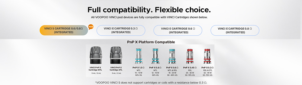 Το VOOPOO VINCI S είναι ένα minimalist POD 40W, σχεδιασμένο για καθημερινή, αδιάκοπη χρήση. Με την μπαταρία Ultra Endurance 2000mAh, προσφέρει πολλές ημέρες αυτονομίας χωρίς άγχος φόρτισης — πάντα ενεργό, πάντα έτοιμο, χωρίς διακοπές.